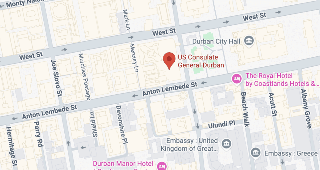 LINK to list of U.S. Embassies and Consulates in South Africa
